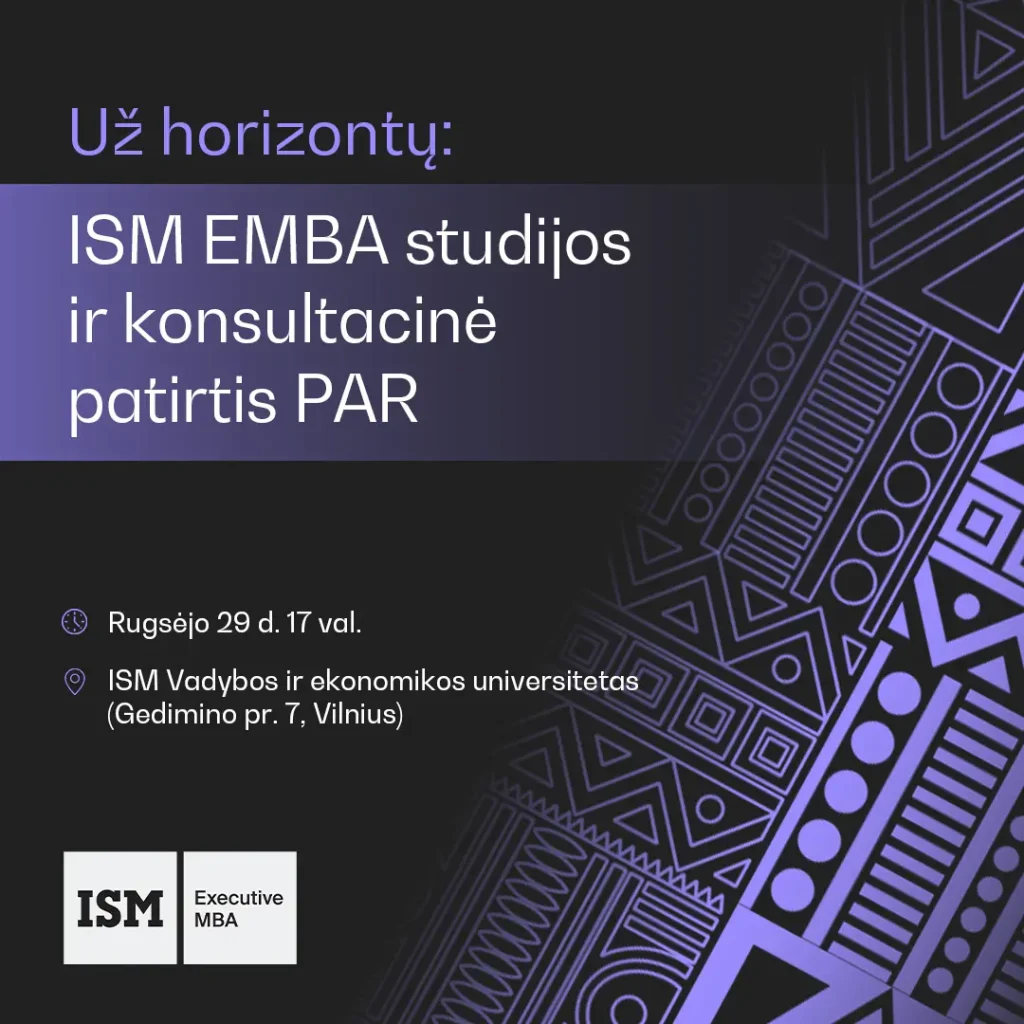 Už horizontų: ISM EMBA studijos ir konsultacinė patirtis PAR Rugsėjo 29 d. | 17:00 val.